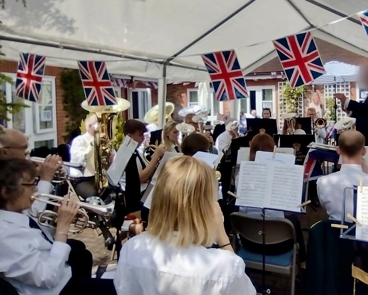 The band were invited to play at Ashlyns Care Home for a private 2022 Jubilee event for residents and their families to enjoy a programme dedicated to their Platinum Jubilee Celebrations.